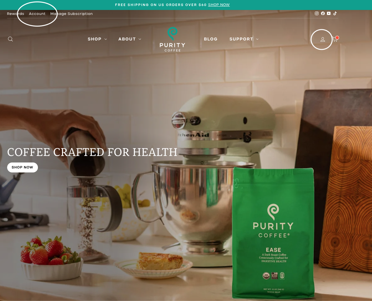 To change your default address, you will first log in to your account. Click the "Account" link or icon from the top of any page.