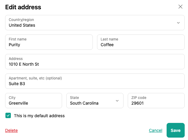 Edit as needed, and if you'd like to save the address as your default, make sure to check the box at the bottom.