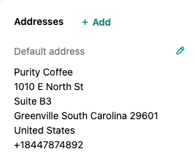 Click "+ Add" to enter a new address, or click the pencil to edit an existing address.