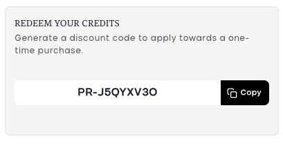 Your points will be converted instantly into a unique discount code.