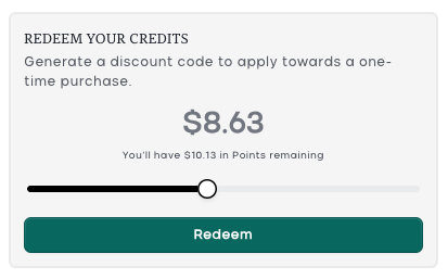 In the "Redeem Your Points" panel on the right side of your rewards card, you'll see a slider. Drag the slider to the right to choose how much you'd like to redeem.
